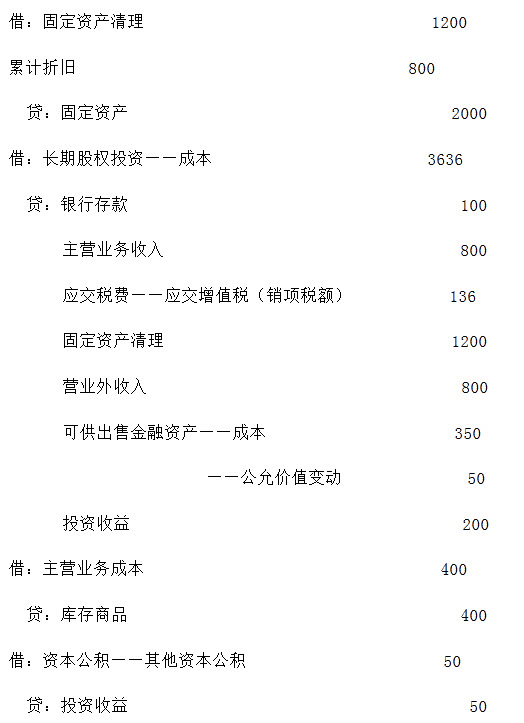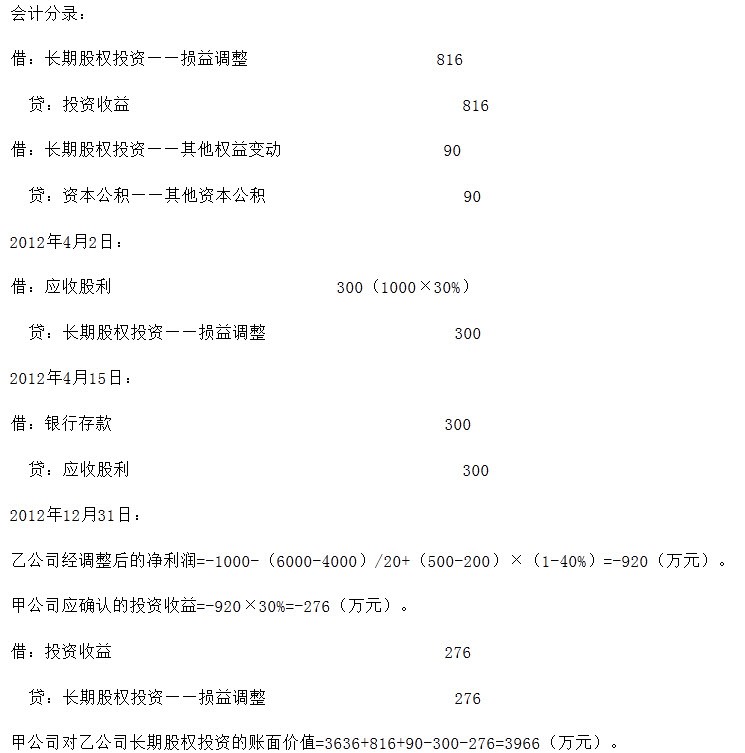 (2)2011年12月31日对12月10日取得的可供出售金融资产采用公允价值进行期末计量,其购买成本为800万元,公允价值