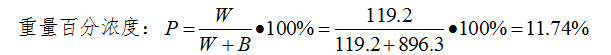 152、问答题 计算题:已测得烧杯中矿浆的固体重量为119.2g,水的重量为896.3g,求该矿浆的重量百分浓度。
