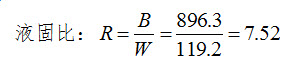 164、问答题 计算题:已测得烧杯中矿浆的固体重量为119.2g,水的重量为896.3g,求该矿浆的液固比。