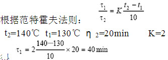 188、问答题 计算题:已知某橡料在140℃时正硫化时间为20分钟,试计算在150℃时需要多少时间硫化?(设硫化温度系数K=2)。