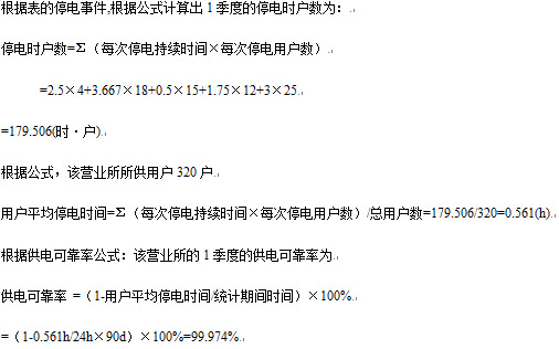 停电用户供电可靠率=(1-AIHCI/统计期间时间)×100%=(1-2.02/2184)×100%=99.9075%