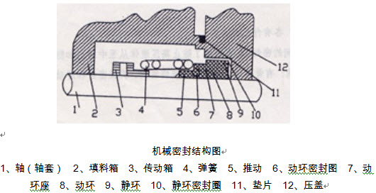 由动环、静环、弹簧、推环、传动座、动、静环密封圈组成。靠动静环紧密贴合,形成膜压来密封的。机械密封的缺点是密封性能好,寿命长,耗功小,使用范围广,缺点是制造复杂,价格较贵,安装要求高。