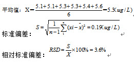原子荧光法测定地表水中硒,6次测定值分别为5.1ug/L,5.1ug/L、5.3ug/L、5.3ug/l、5.4ug/L、5.6ug/L,计算6次测定的相对标准偏差。