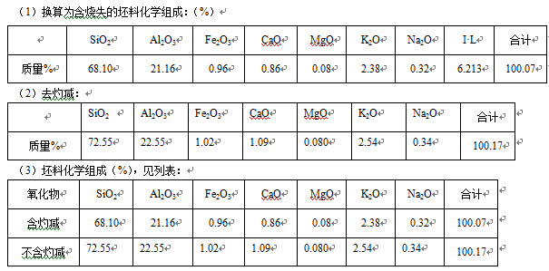本题答案:绢云母;绢云母-石英-高岭土;还原焰