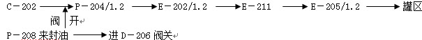 6)向塔内扫线时,应先扫重油线,后扫轻油线,扫上部线时,下部线的根阀必须关死,,没有阀的通入蒸汽以防窜油。