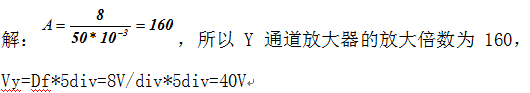 189、问答题  某示波管的Y偏转因数为Df=8V/div,用其构成一示波器。要求该示波器的最小偏转因数Dymin=50mv/div,试计算Y通道放大器的放大倍数。假如荧光屏的有效高度为5div,则Y通道末级放大器的输出电压幅度为多少?