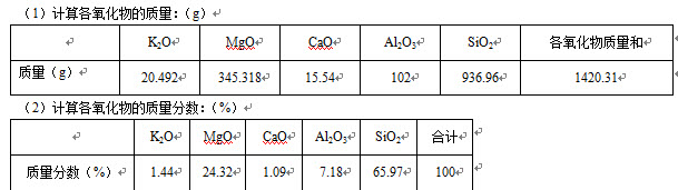本题解析:试题答案CaO•AL2O3•2SiO2;3MgO•4SiO2•H2O;CaCO3;CaCO3MgCO3