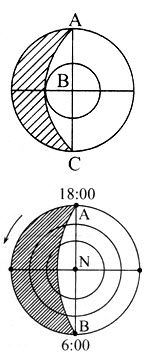 (2)食既。当月轮与日轮第一次内切时称“食既”,日全食开始。