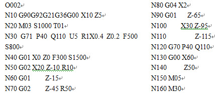 3)、精加工进给率F0.1,粗加工进给率F0.3;