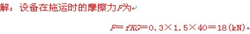 6、问答题 有一台设备质量G为40kN,采用钢拖板在水泥路面上滑移至厂房内安装,钢板与水泥地面的摩擦系数f为0.3,路面不平的修正系数K=1.5,问拖动该设备需要多大的力?