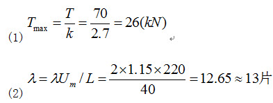 计算题:某220KV输电线路,使用XWP-70型号绝缘子,有效泄露距离L=400mm,线路通过第二级污区,爬电比距λ=2cm/KV(2.3cm/KV),系统最高工作电压取工作电压的1.15倍,运行情况安全系数K=2.7。