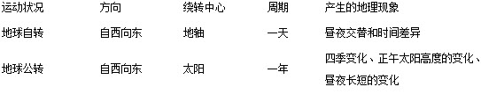 本题解析:分析:地球公转的周期是一年;公转的方向是自西向东;产生的地理现象:①昼夜长短的变化;②四季的形成.