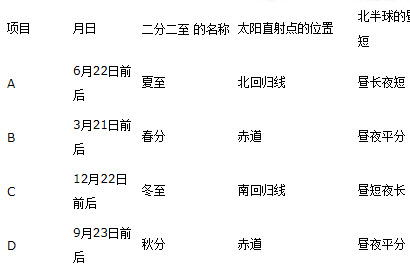 点评:本题考查地球公转中不同节气的日期,牢记即可.