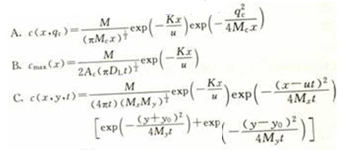 那么,在距离瞬时点源下游。处的污染物浓度峰值表达式为()。