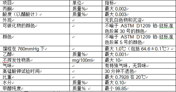 本题解析:试题答案精甲醇的质量标准主要有美国联邦O-M-232K“AA”级标准和中国GB338-92优等品标准。