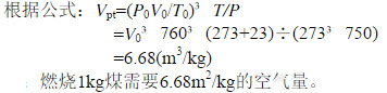 燃烧1kg煤需要6.68m2/kg的空气量。