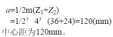 16、问答题 两圆柱直齿轮啮合,该齿轮组模数为4,大齿轮齿数36,小齿轮齿数为24,求中心距a?。