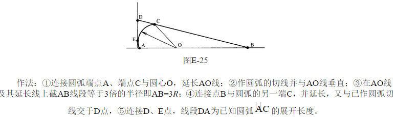 6、问答题 绘图题:已知一小于90°的圆弧,请用钢板尺、划规、划针作该段圆弧的展开长度。