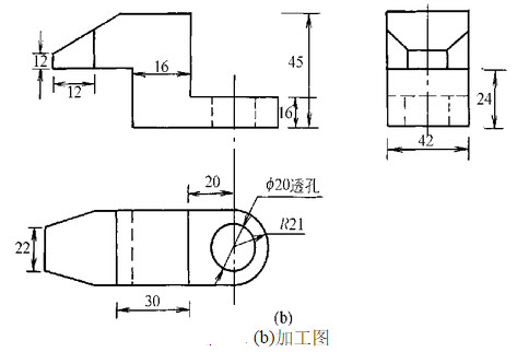 绘图题:根据图(a)提供的机体立体图形及其尺寸,绘制加工图。