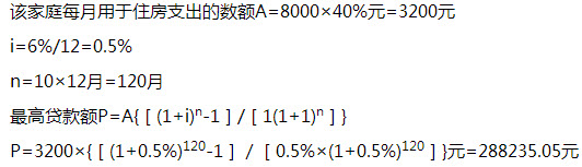 16、问答题 某家庭估计在今后1 0年内的月收入为8000元,如果 其月收入的40%可以用来支付住房抵押贷款的月还款额,在年贷款利率为6%的情况下,该家庭有偿还能力的最大抵押贷款额是多少?