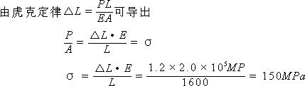 27、问答题 计算题:一低碳钢制螺栓,长160cm,拧紧时产生了0.12cm的伸长,试求螺栓内的拉应力。(取E=2.0×105Mpa)