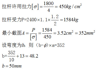 26、问答题 计算题:某带电班用一块厚10mm的3240环氧酚醛玻璃布板(环氧酚醛玻璃布板极限破坏应力为1800KG/cm2,安全系数K=4,冲击系数K1=1.1,不均衡系数K2=1.2,做一副带电更换LGJ-240导线的线路双串耐张绝缘子中的单串耐张绝缘子串拉板,导线张力估算为2400KG,与绝缘子卡具配合的螺孔直径为13mm,计算拉板的宽度?
