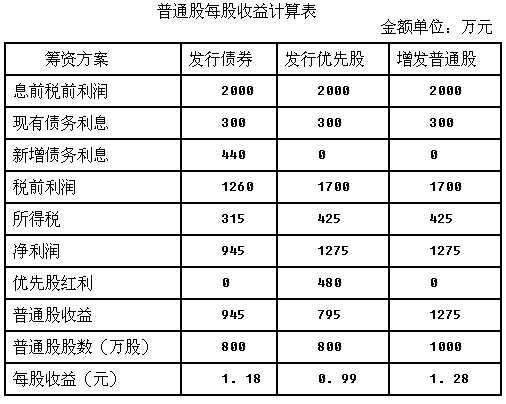 (2)计算增发普通股和债券筹资的每股(指普通股,下同)收益无差别点(用息前税前利润表示,下同)以及增发普通股和优先股筹资的每股收益无差别点。