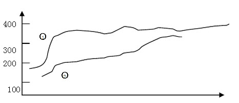 3、问答题  制图题:根据筒体温度曲线作火焰与筒体冷却风机挡板调整。