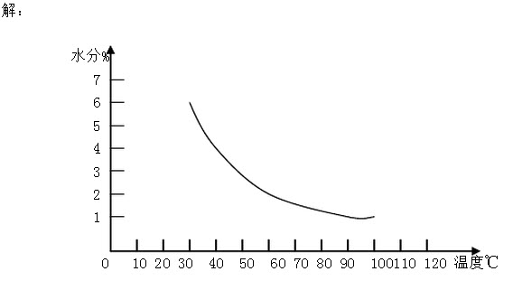 (1)根据下列数据,绘出NSF窑用煤的烘干曲线图。(2)根据烘干曲线,为获得1%~2%残留水分,选定磨的出口温度是多少?