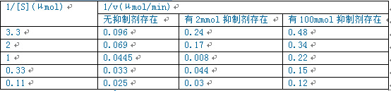 下表数据是在没有抑制剂存在或有不同浓度的抑制剂存在时测得的反应速度随底物浓度变化的情况: