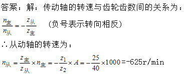 答:从动轴的转速为:625r/min旋转方向与主动轴旋转方向相反。