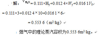 3、问答题 已知某煤的Hy=3%,Wy=10%,其燃烧的理论空气量为6m3/kg,用焓为10g/kg的空气,试求烟气中的理论蒸汽容积。