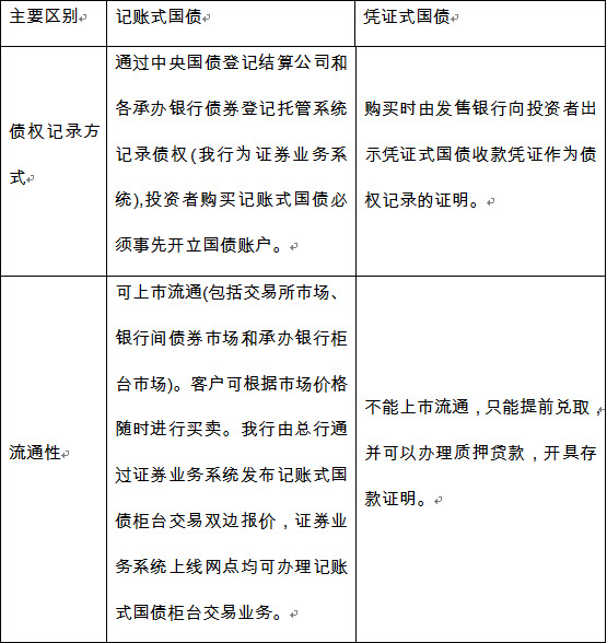 20、问答题 记账式国债与凭证式国债有哪些主要区别?