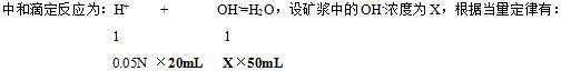 19、问答题 计算题:某铜矿采用石灰作为选矿介质调整剂,利用酸碱中和法测定矿浆碱度,量取矿浆澄清液100ml,用0.05NH2SO4滴定耗酸20mL,试计算此时矿浆PH值。(原子量:Ca:40,O:16,H:1)