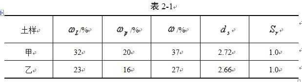 已知甲、乙两土样物理性质指标如表2-1: 判断下列结论中,正确的是()。