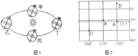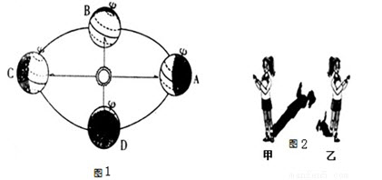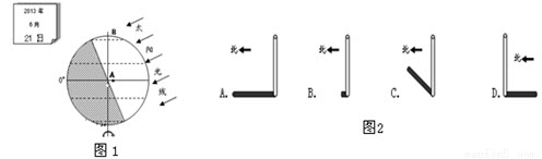 (1)请你在地球公转轨道上(图1)用箭头画出地球的公转方向.