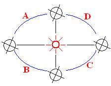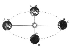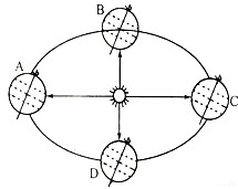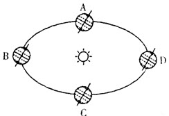 (3)当地球运行至公转轨道的A、B、C、D位置时