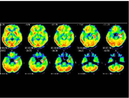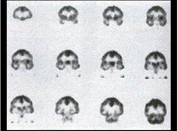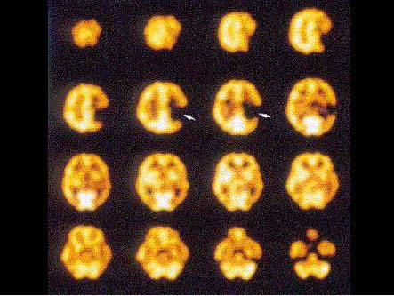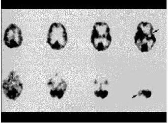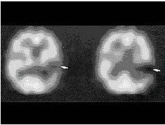 15、多项选择题 男性,74岁,突发头疼、意识丧失1h,既往有高血压病史。行99Tcm-ECD脑血流断层显像横断层如图,诊断是()