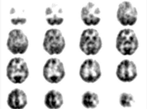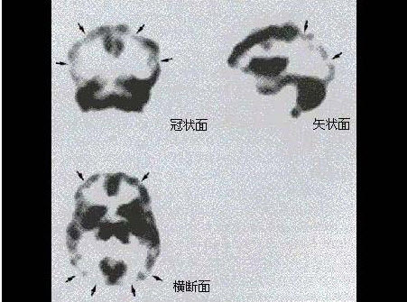 老年患者,68岁,听力减退,反应迟钝,有高血压病史14年。行99Tcm-HMPAO脑血流灌注显像如图,诊断是()。