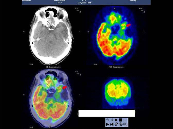 患儿6岁,反复发作抽搐2年,行18F-PET显像如图,诊断是()。