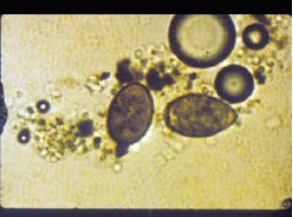 患者半月前急起畏寒发热,腹痛、腹泻,大便5~6次/天,糊状,有时呈暗红色。用甲硝唑治疗1周,病情无缓解。近1周来出现咳嗽、咳痰,并且痰中带血,有时痰呈铁锈色。半年前有生食溪蟹史。