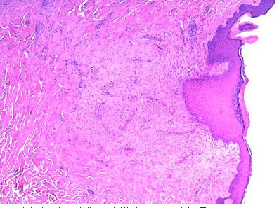 患者男性,63岁,足部溃烂3个月。于溃烂周边处区组织活检。
