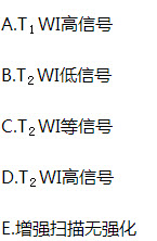 211、单项选择题 脊髓内肿瘤的MRI表现为()