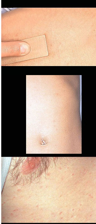 患者于9月1日开始突起畏寒,发热,体温38℃,自认为“感冒”,未经特殊治疗,3天后体温上升至39℃,感全身不适,到当地医院就诊检查:白细胞7×109/L,中性粒细胞0.62,嗜酸性粒细胞0.02,淋巴细胞0.35,经青、链霉素治疗无效于9月5日再去医院就诊,疑为“伤寒”,抽血作肥达反应,结果“H”1:80,“O”1:40,“A”1:40,“OB”(-),血象检查:白细胞6.7×109/L,中性粒细胞0.65,淋巴细胞0.35,改用氯霉素治疗无效。因体温持续不退,全身酸痛,当地医院加用地塞米松每日10mg静脉滴注两天后体温下降,9月9日又开始发热,体温达39.5℃,伴有腹胀,右下腹压痛,加用庆大霉素2支/天,共用3天,12日又退热回家,15日起发热,食欲不振,腹胀,再次加用地塞米松每天20mg静滴。17日晨大便呈暗红色,并感头晕,面色苍白,口渴,出冷汗,即以发热待查收住院治疗。