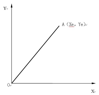 根据B功能刀补的原理,利用G42方式加工图中OA线段时,已知刀具半径补偿值为r和A点坐标(Xe,Ye),计算A点的实际刀具中心的坐标值。