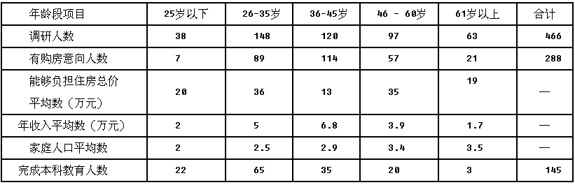 某房地产市场调研人员在房展会上运用访问法获得下表所示数据:
