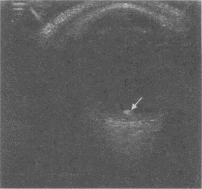某近视患者,眼部碰伤后,视物不清。眼部超声如图,最可能的诊断为()。