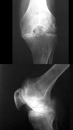 男,30岁,右膝关节酸胀,疼痛不适5个月,X线检查如图所示,最可能的诊断是()