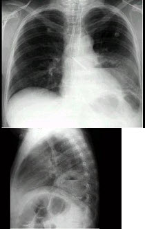 男,65岁,胸痛,胸片检查如图,下列诊断中最可能的是()
