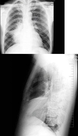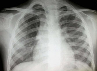 男,24岁,低热2周,咳少量痰。胸片示右上肺不均密度增高影,其中有空洞形成,血沉45mm/h。